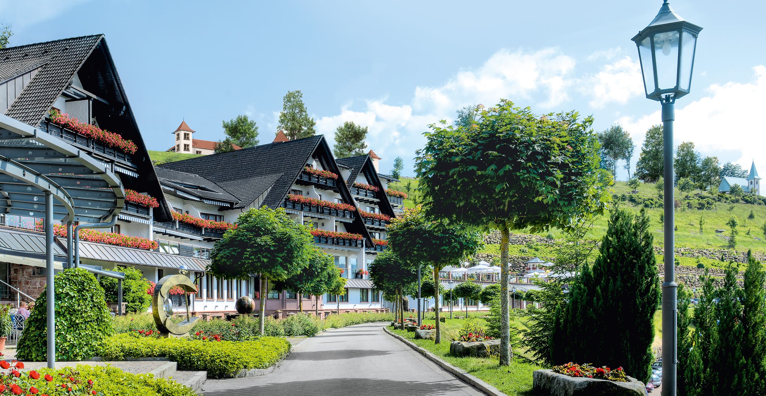 Wir beginnen mit einem Blick auf die Landkarte Europas, auf der das Bundesland Baden-Württemberg mit seinen einzelnen Regionen hervorgehoben ist. Ein Gleitflug führt uns über die Schwäbische Alb und die Burg Hohenzollern, vorbei an einer Landstraße im Schwarzwald, auf der eine schwarze Limousine zielsicher zum Brenners Park-Hotel & Spa in Baden-Baden fährt. Am Eingang wartet bereits ein Kofferpage auf die Gäste und öffnet der Dame die Fondtür der hoteleigenen Limousine. Hier gilt: Service von Anfang an.